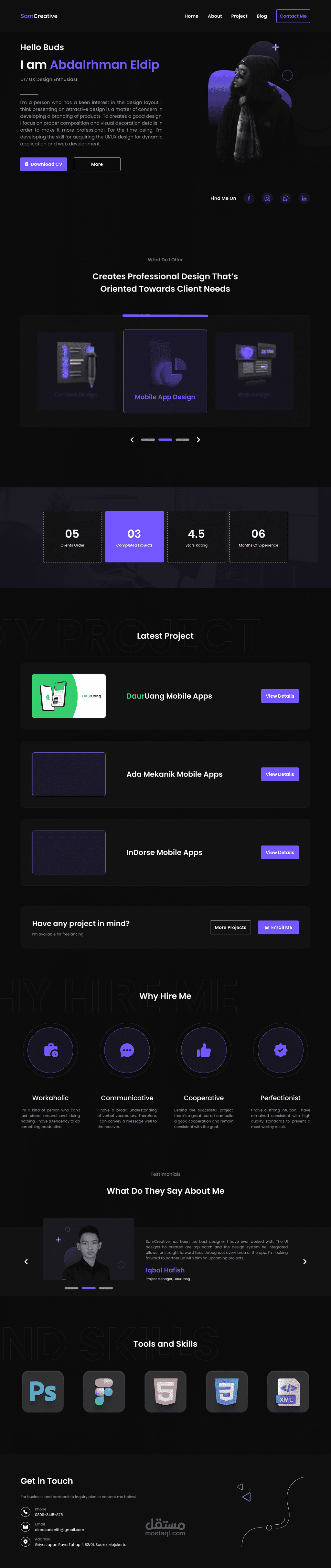 إلمام بـ Laravel (PHP): خبرة بسيطه في استخدام Laravel (PHP) للتطوير الخلفي، مما يسهل التكامل السلس مع تقنيات الواجهة الأمامية.