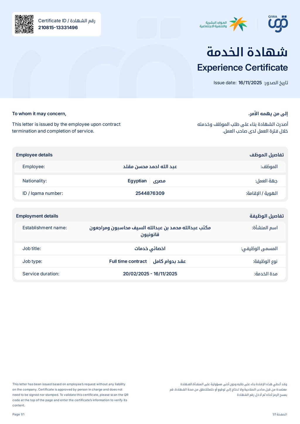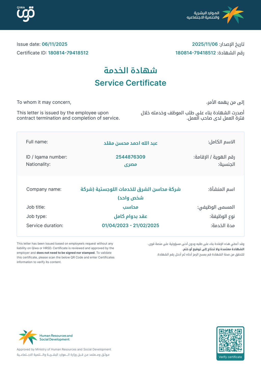 محاسب محترف بخبرة متقدمة في إدارة العمليات المحاسبية لعدة شركات في قطاعات متنوعة، تشمل المطاعم والمقاولات والخدمات المهنية واللوجستية. متمكّن في إعداد الأدلة المحاسبية، إدارة الدورة المحاسبية الكاملة، التسويات البنكية، إعداد التقارير والقوائم المالية، وتقديم الإقرارات الضريبية عبر ZATCA.