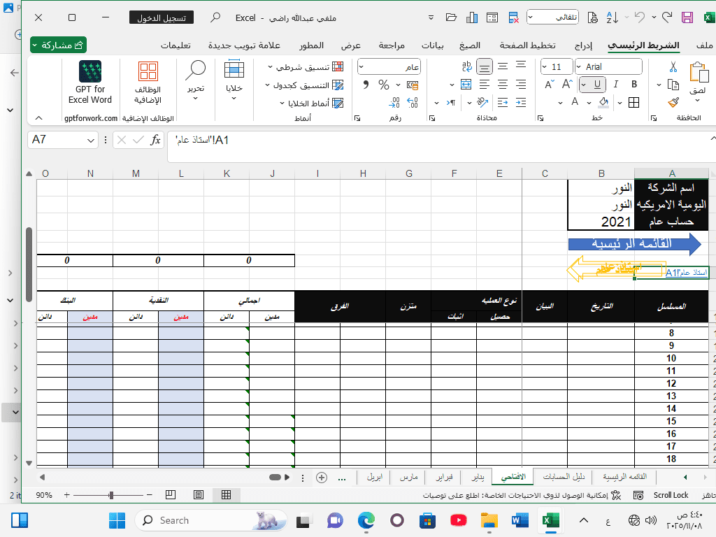 محاسب ومعد نظام بالاكسيل ومدخل بيانا في انظمة ERP