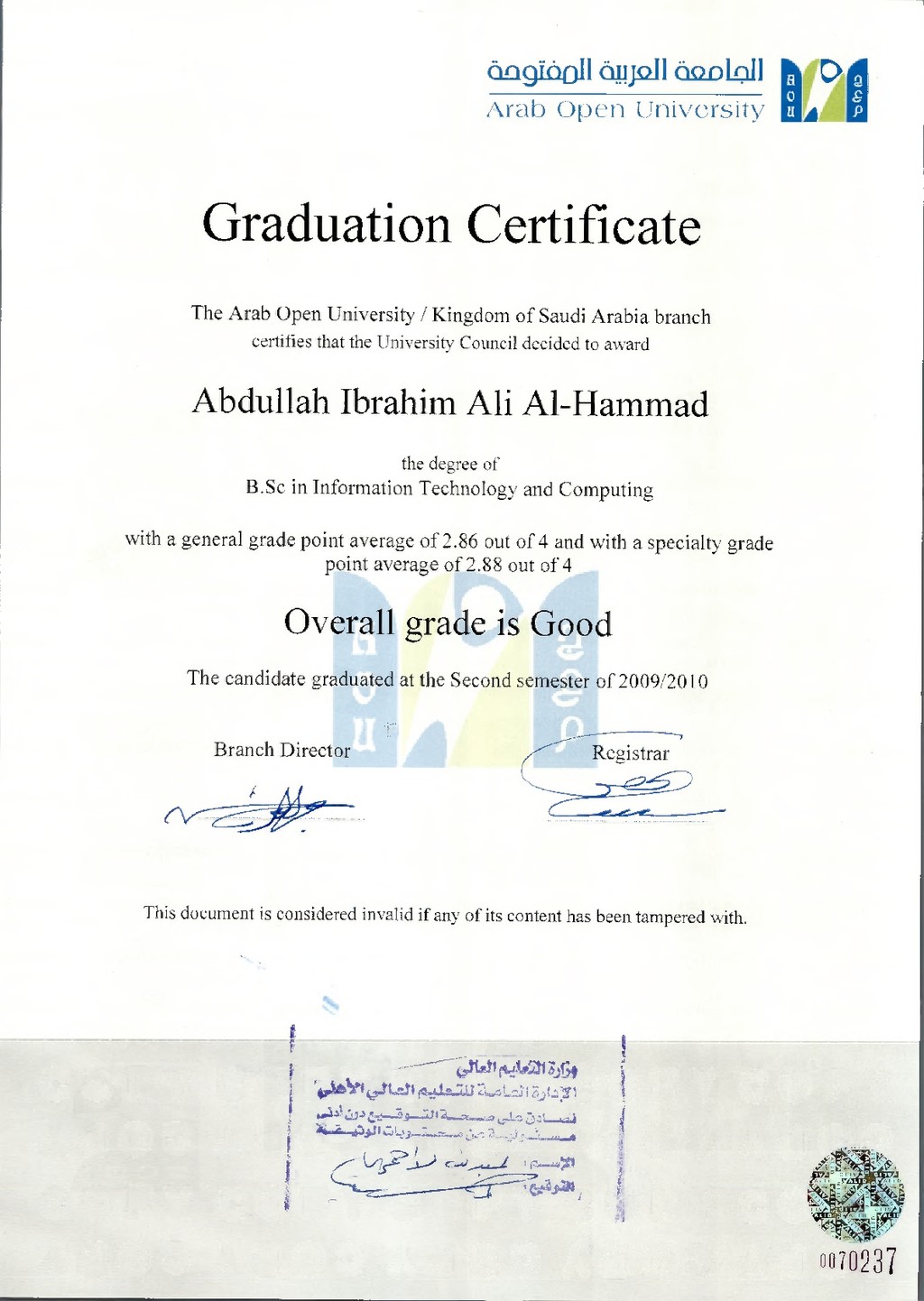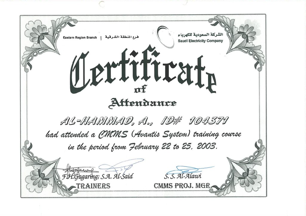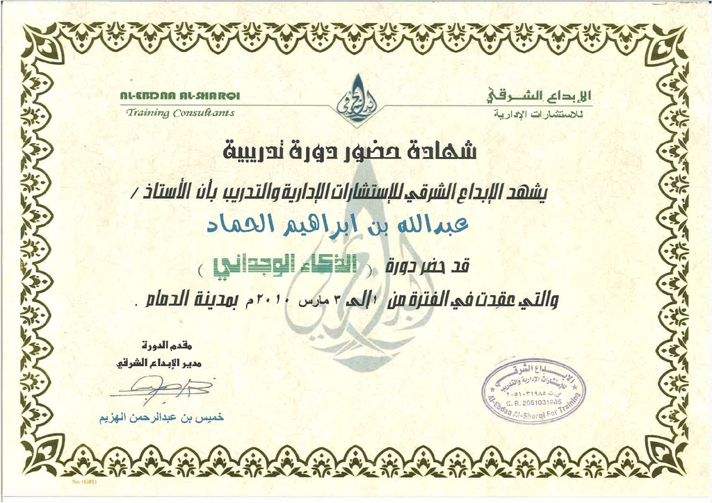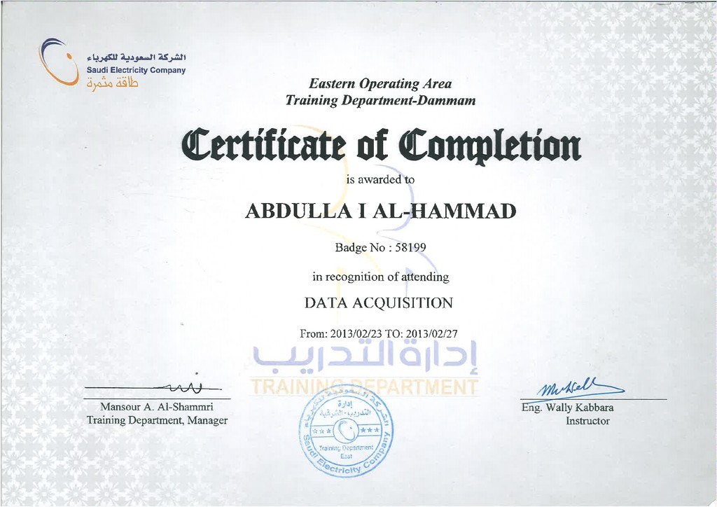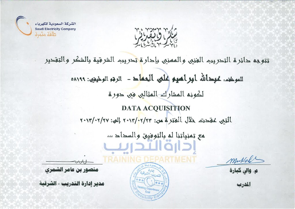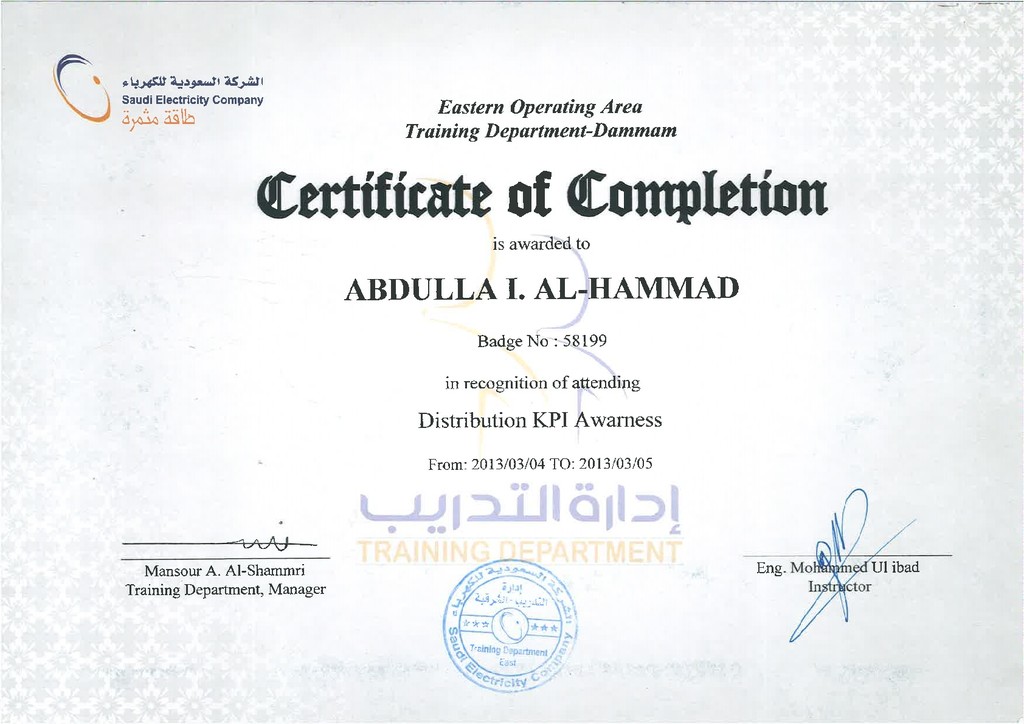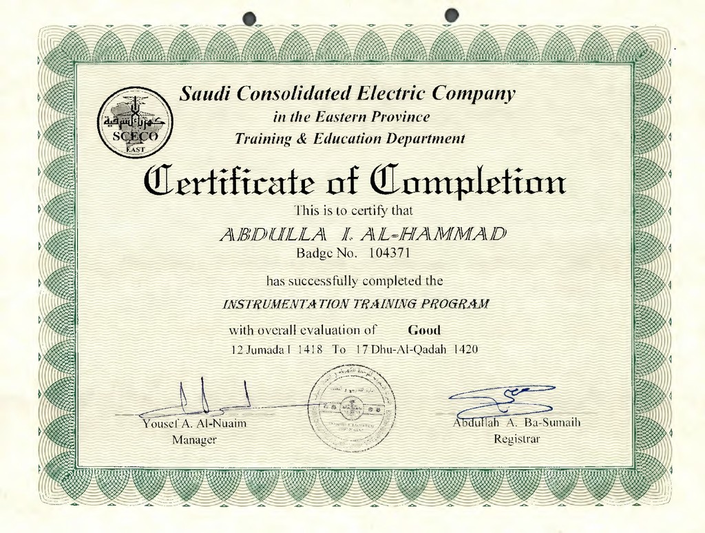 خريج 1999 من معهد شركة كهرباء الشرقية