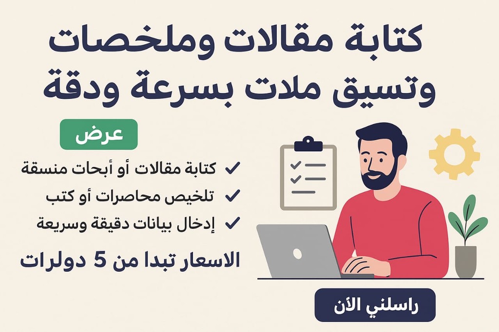 > هل تحتاج إلى مقالات، أبحاث، أو ملخصات مكتوبة بشكل منظم وواضح؟
