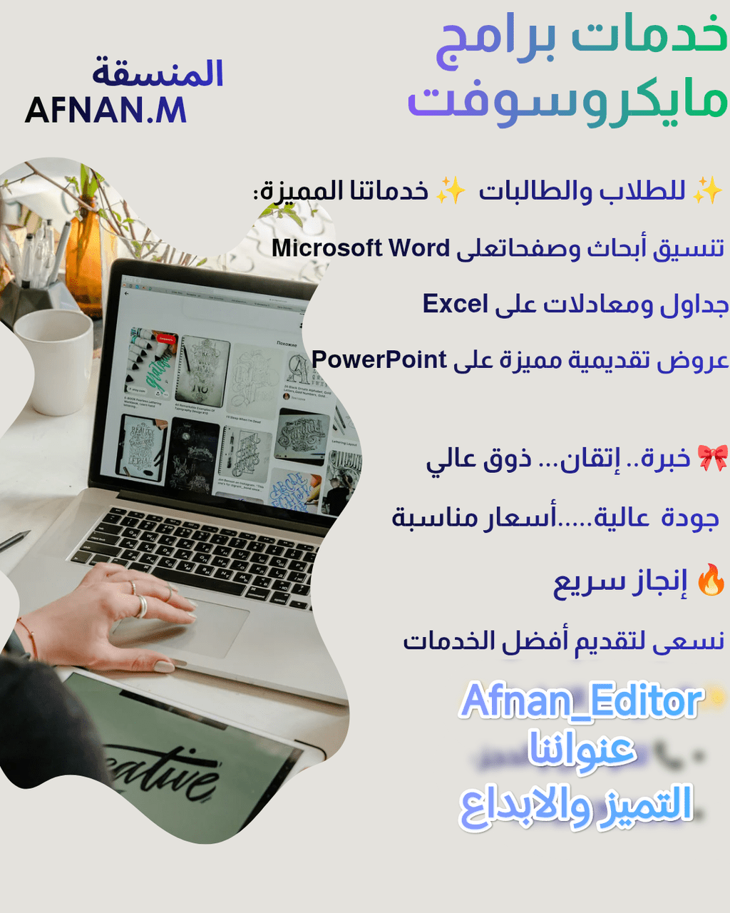 العمل على تنسيق التقارير، الكتب، والملفات النصية وتحويلها من مسودات إلى ملفات احترافية جاهزة للنشر، مع مراعاة قواعد التنسيق الفني والتدقيق.