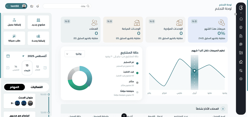 تنفيذ لوحات تحكم وإدارة للعقارات والوحدات السكنية.