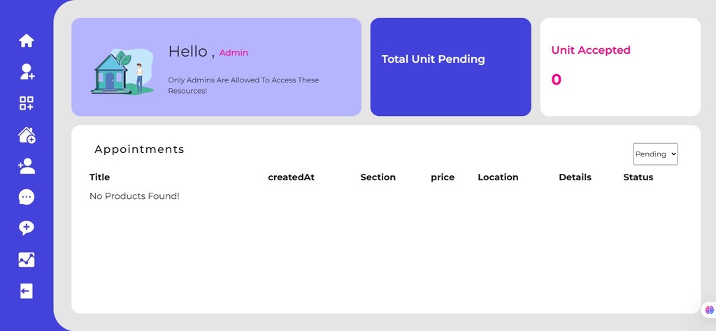 موقع عقارات يمكن للمستخدم إضافة إعلان وتعديله والتواصل مع الأدمن وانتظار الموافقة