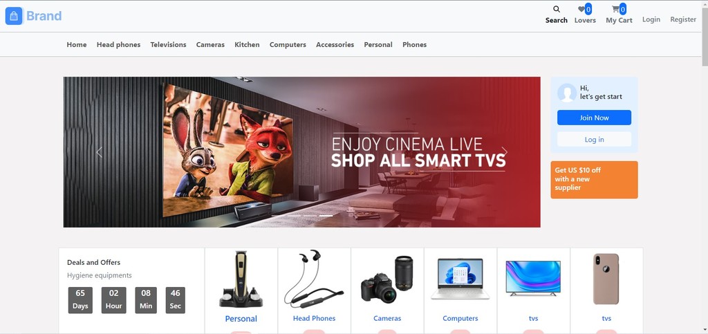 متجر إلكتروني بسيط يدعم إضافة المنتجات إلى السلة مع تحديث السعر والتصفية والبحث