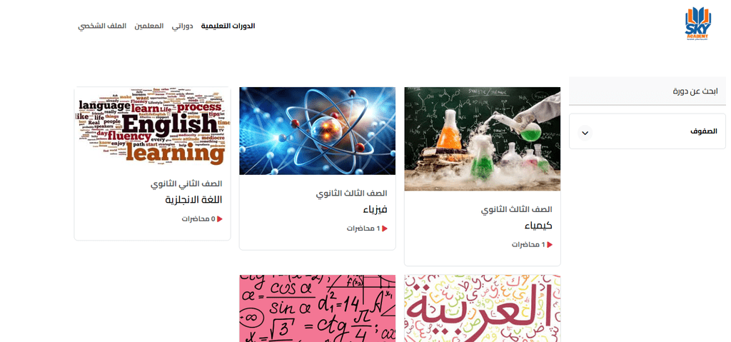منصة تعليمية تحتوي على لوحة تحكم للأدمن والمعلم والطالب مع حماية للمسارات (Protected Routing) وتصفية الدورات وتسجيل آمن