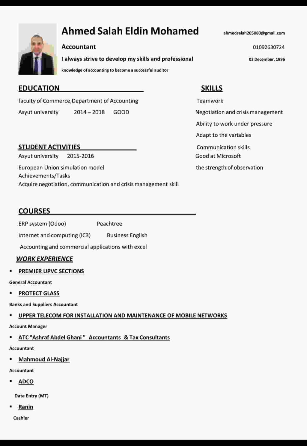 مهام عملى :ـ1- مسؤل عن حسابات العملاء وكل مايخص حسابات العملاء.