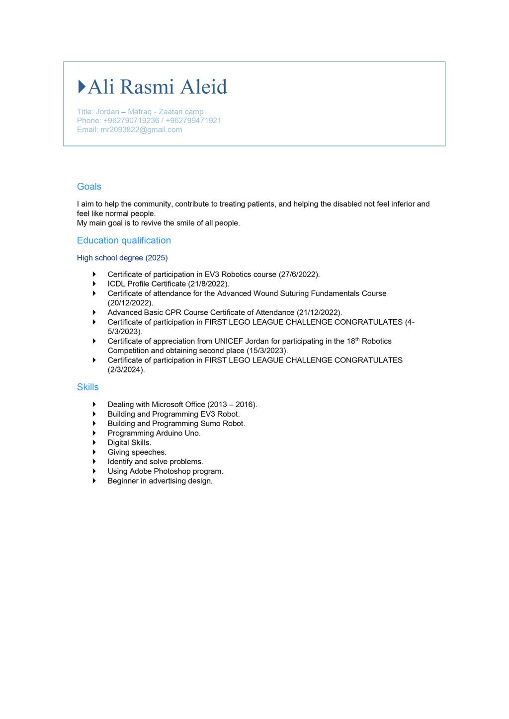 حاصل على عدة شهادات في المهارات الرقمية، التصميم الجرافيكي، البرمجة، وتصميم الروبوتات، وأسعى دائمًا لتقديم أعمال تتسم بالدقة والالتزام.