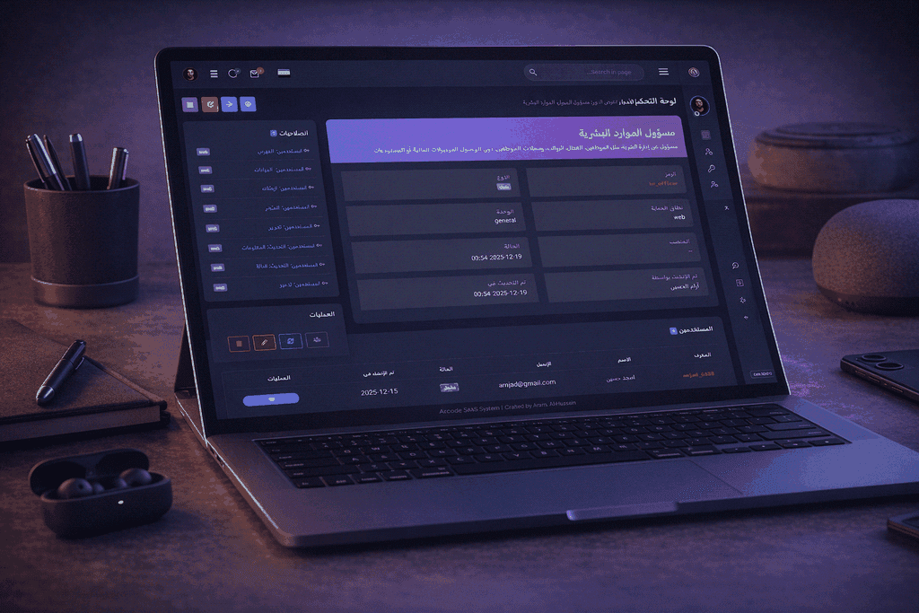 أعمل على تطوير منصة ERP معيارية بنظام SaaS تحت اسم Arcode، مع التركيز على بنية نظيفة وقابلة للتوسع. يشمل المشروع بناء Core System مستقل، إدارة حسابات ومستخدمين، ونظام صلاحيات ديناميكي قابل للتوسع تلقائيًا مع نمو النظام.
