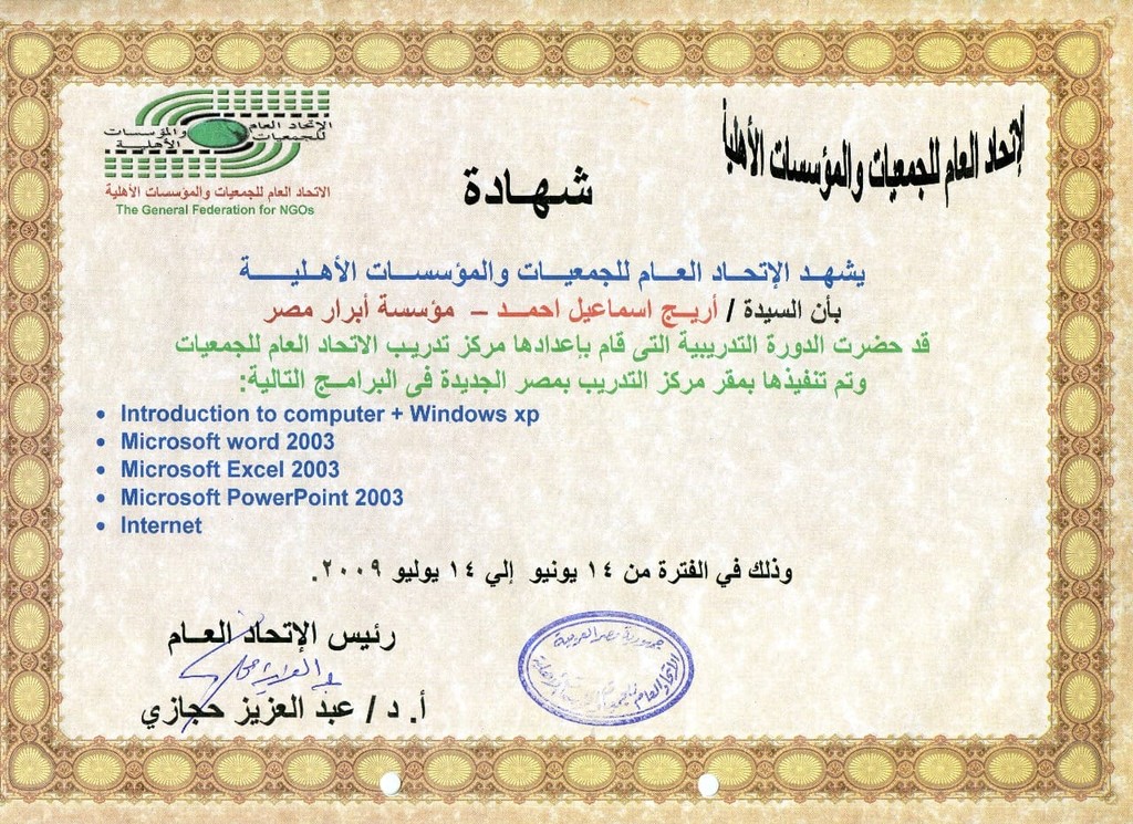يناير 2008 - يناير 2016 : إدارة وعلاقات عامة بمؤسسة أبرار مصر لتنمية المجتمع