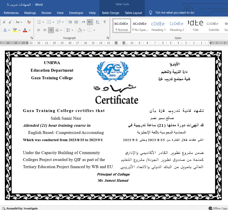 حاصلة على بكالوريوس إدارة تكنولوجية ودبلوم تجارة وإدارة مكاتب، ولدي خبرة عملية كمساعد/ة إداري في جمعية الخريجات الجامعيات.