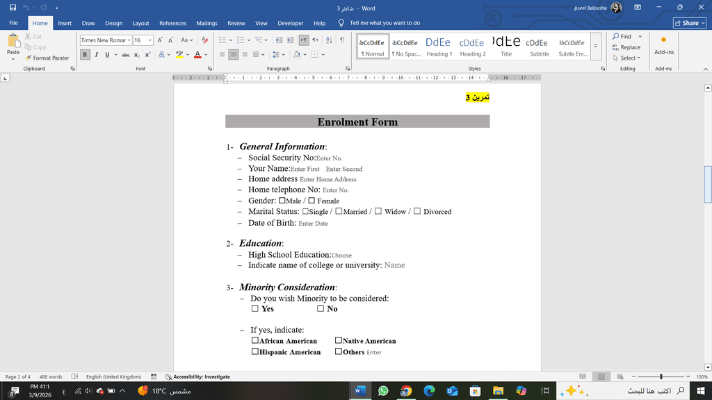 إعداد الجداول والتقارير باستخدام برامج Microsoft Office.
