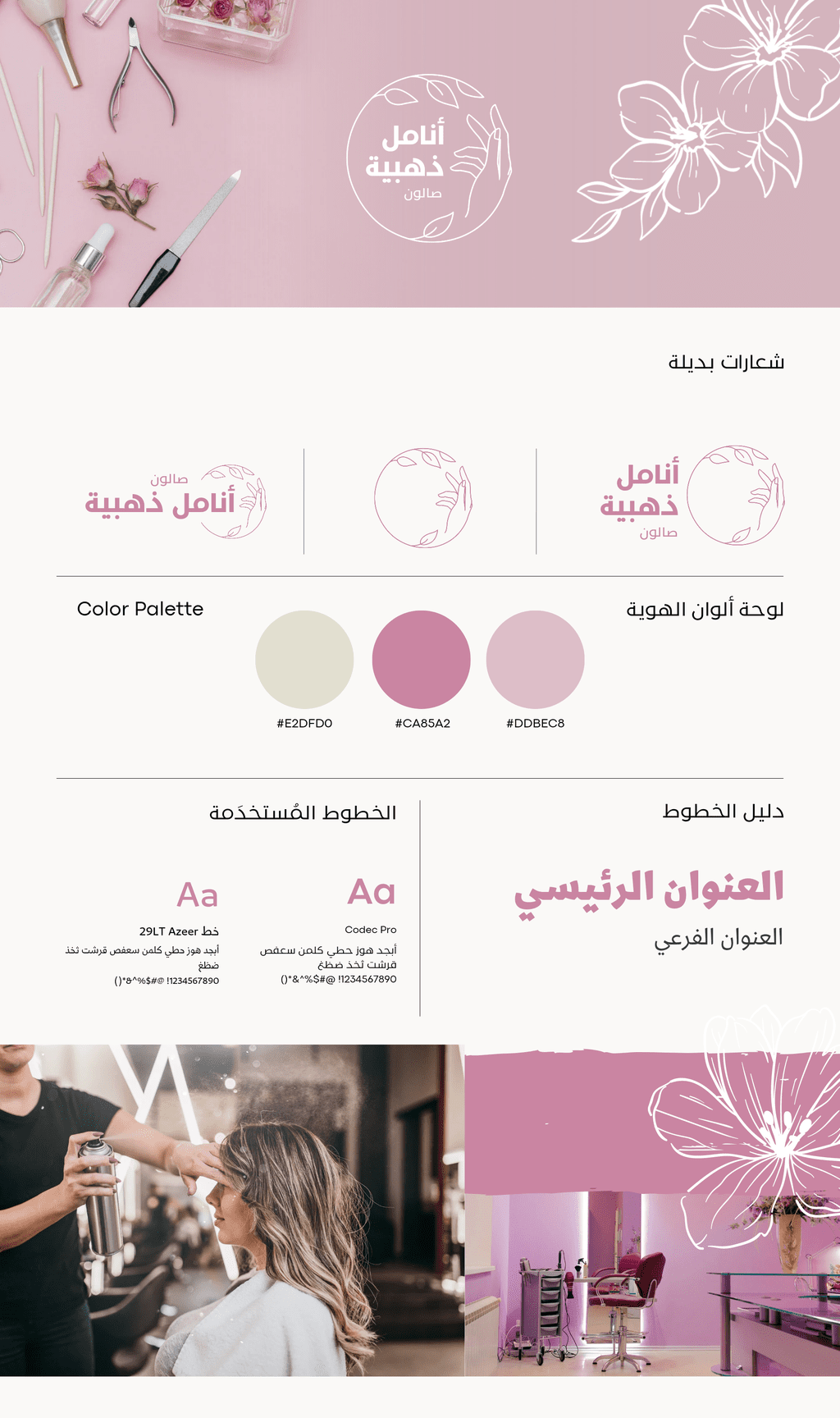 - الهويات البصرية (Brand Identity):تصميم شامل يشمل الألوان، الخطوط، البطاقات، البروفايل، وغيرها
