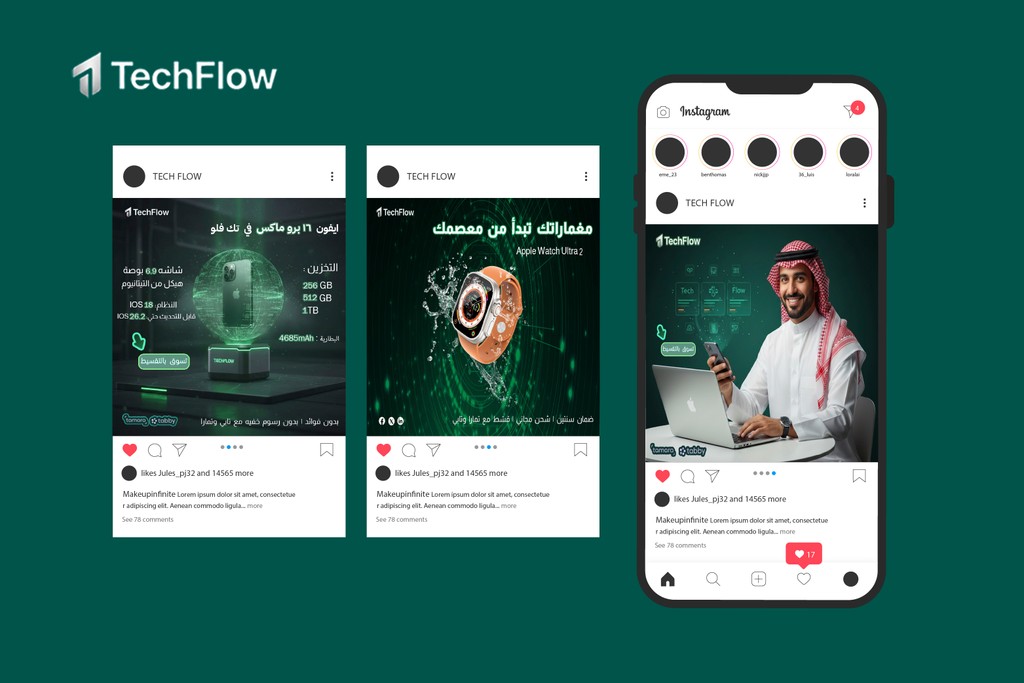 تصميمات سوشيال ميديا، نُبرز المنتج بطريقة فنية وبإحترافيه عاليه