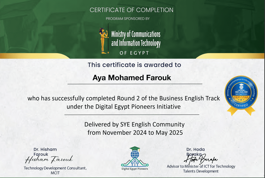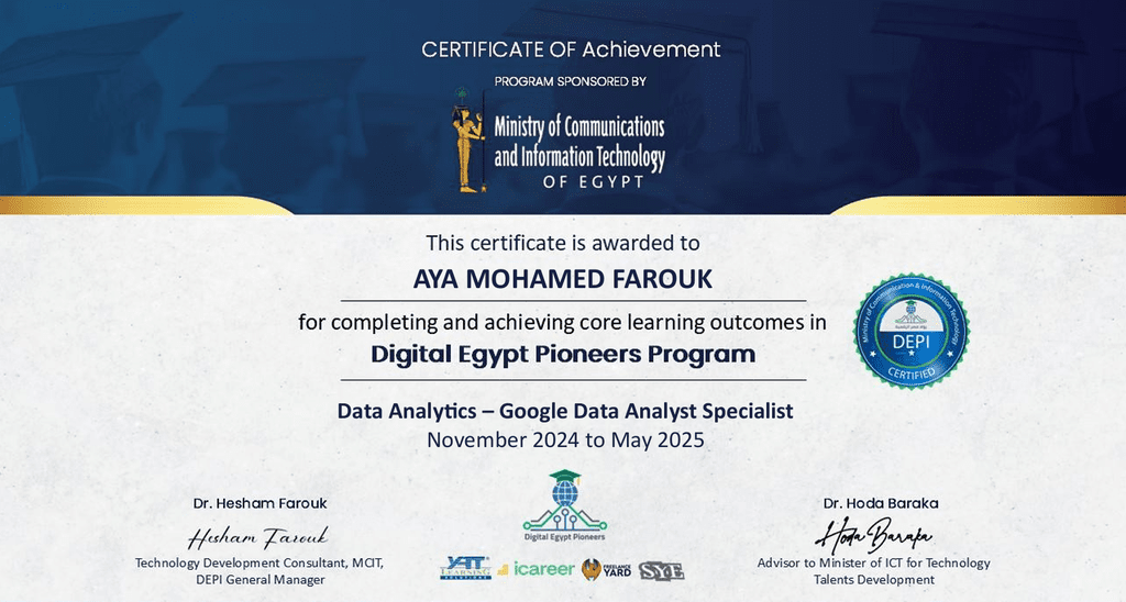اهلا بك انا ايه اعمل كمحلله بيانات و اقد داش بورد احترافي باستخدام Tableau& Power BI و استخدام SQL & Excel و اقدم رؤي تحليليه للعميل ليحسن جوده عمله و ذلك في اسرع وقت و بدقه و كذلك قمت بالتدريب في بنك في قسم خدمه العملاء مما يؤهلني للتعامل باحترافيه مع جميع انواع العملاء