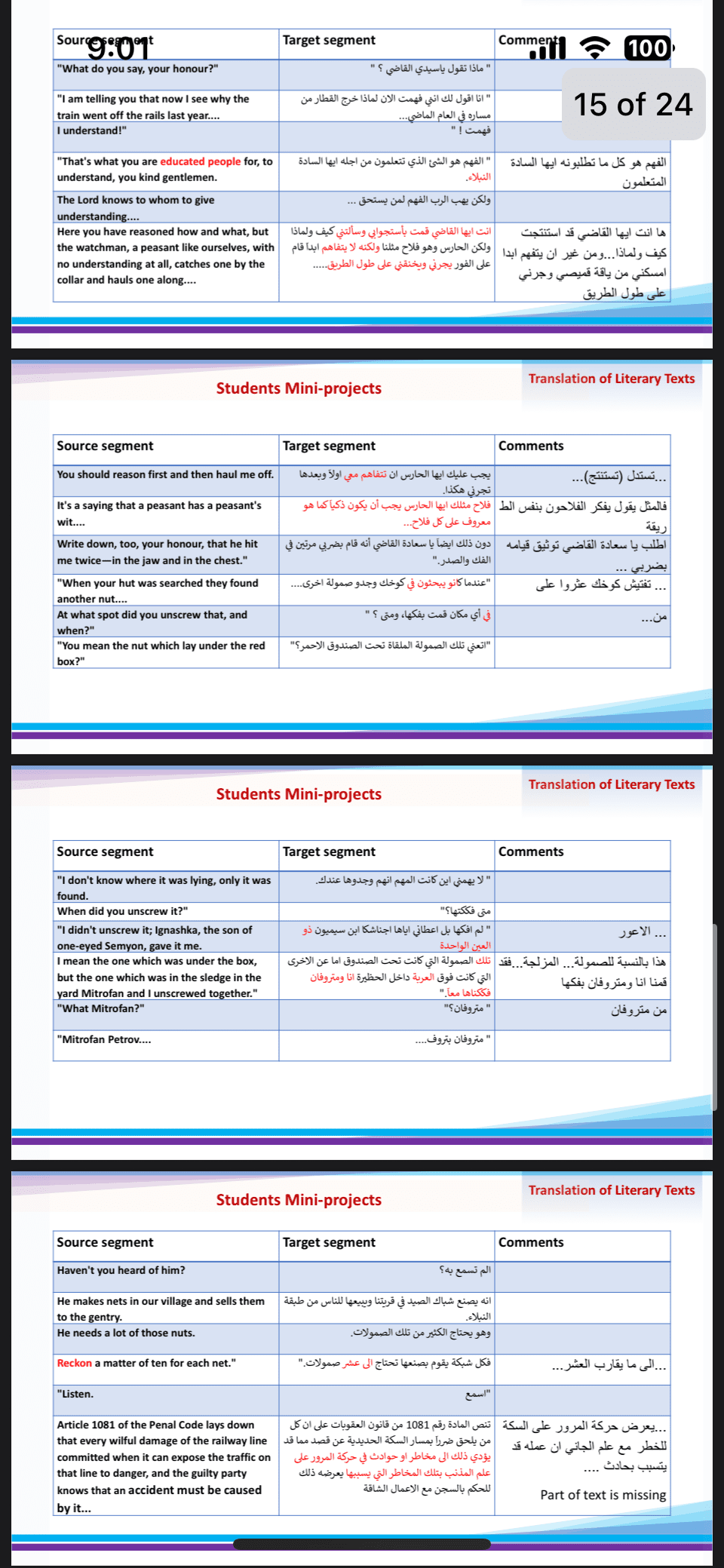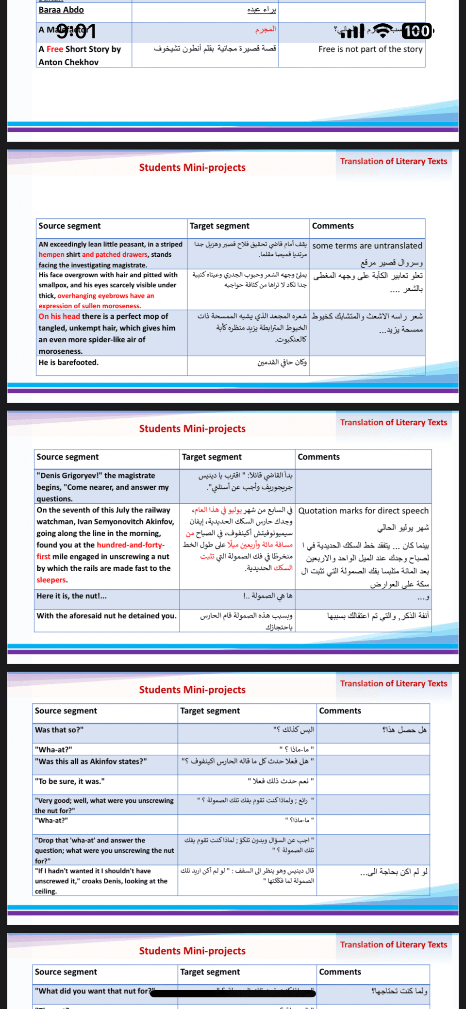 -إدارة المشاريع اللغوية: إدارة مشاريع ترجمة وتدقيق متعددة ومتزامنة بنجاح لعملاء بارزين مثل المرجان القابضة و هلبر، مع الالتزام بالمواعيد النهائية الضيقة ومعايير الجودة العالية.