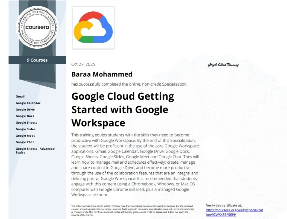 -إتقان تطبيقات الأعمال: إجادة شاملة لجميع برامج Microsoft Office (Word, Excel, PowerPoint) وخدمات Google Workspace (Docs, Sheets, Slides).