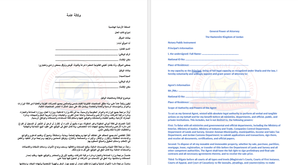 أنا بسّام البطاينة، مترجم قانوني معتمد بخبرة تتجاوز 15 عامًا في الترجمة القانونية والرسمية والتجارية بين اللغتين العربية والإنجليزية. أحمل شهادة ترجمة قانونية مصدّقة من جامعة عمان العربية ووزارة التربية والتعليم، بالإضافة إلى دبلوم عالٍ في اللغة الإنجليزية من جامعة اليرموك. أمتاز بالدقة والالتزام بالمصطلحات القانونية الصحيحة، والقدرة على تسليم الأعمال في الوقت المحدد بجودة عالية. أسعى لتقديم خدمات ترجمة احترافية تضمن الدقّة، السرّية، والالتزام الكامل بمعايير اللغة القانونية.