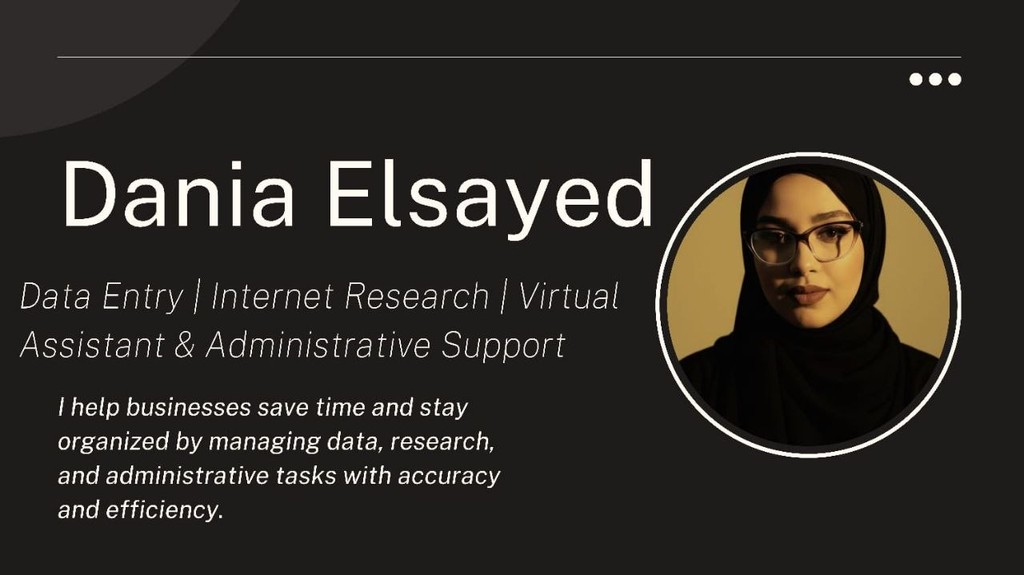 لأن نجاح عملك يبدأ من تنظيم تفاصيله ، أقدم لك خدمة مساعد افتراضي باحترافية تساعدك على إنجاز مهامك اليومية بكفاءة وسلاسة. من إدخال البيانات، تنظيم الملفات، إدارة المواعيد، متابعة البريد والرسائل، إلى البحث وجمع المعلومات، أعمل بدقة وسرعة واهتمام بالتفاصيل لأمنحك وقتًا أكبر للتركيز على تطوير عملك. التزامي بالجودة، السرية، وحسن التواصل هو ما يجعلني شريكاً موثوقاً في إنجاز مهامك.