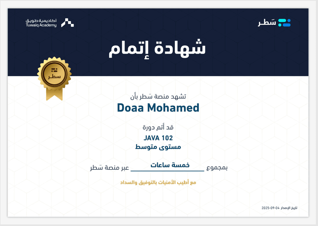أعمل على تطوير مهاراتي من خلال التدريب العملي والتحضير للحصول على شهادة ISTQB Foundation Level.