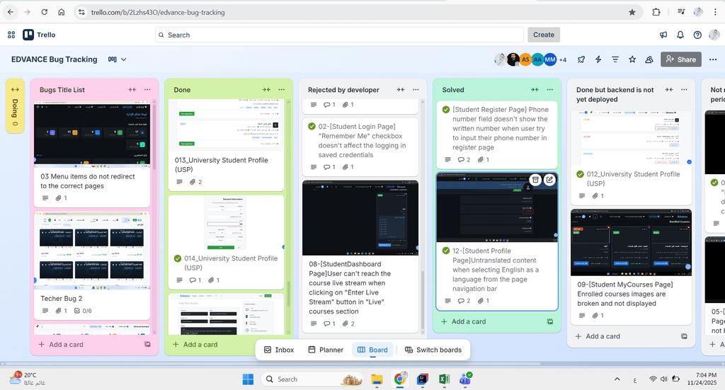 اكتشاف وتوثيق والإبلاغ عن العيوب باستخدام Jira مع توضيح خطوات إعادة الخطأ، الأولوية، والنتائج المتوقعة مقابل الفعلية.
