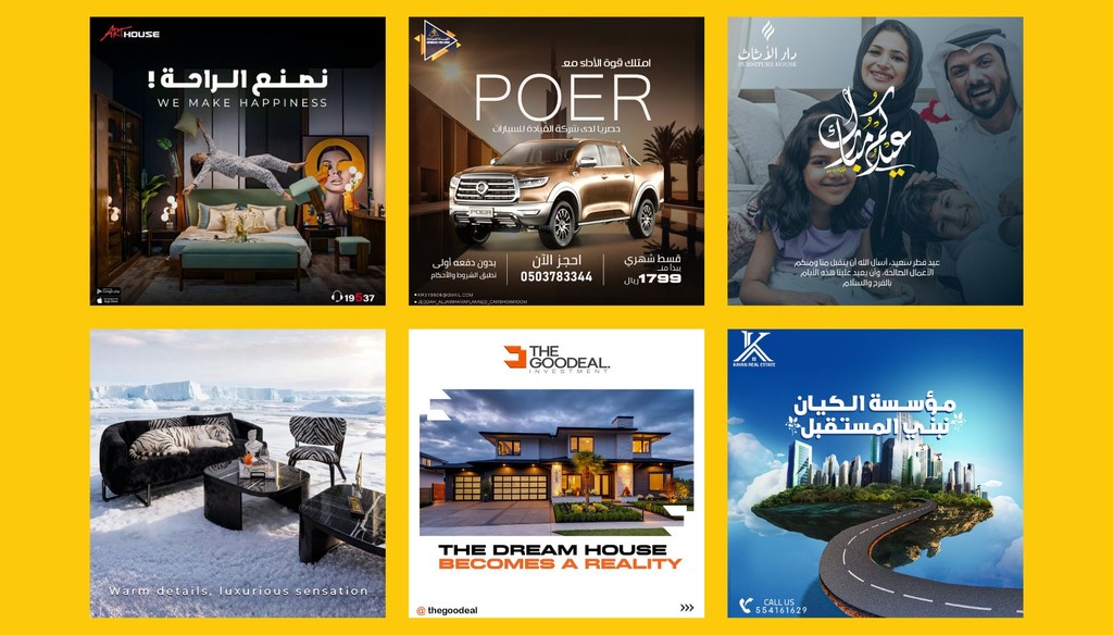 تصميم محتوى تسويقي وإعلاني لوسائل التواصل الاجتماعي.