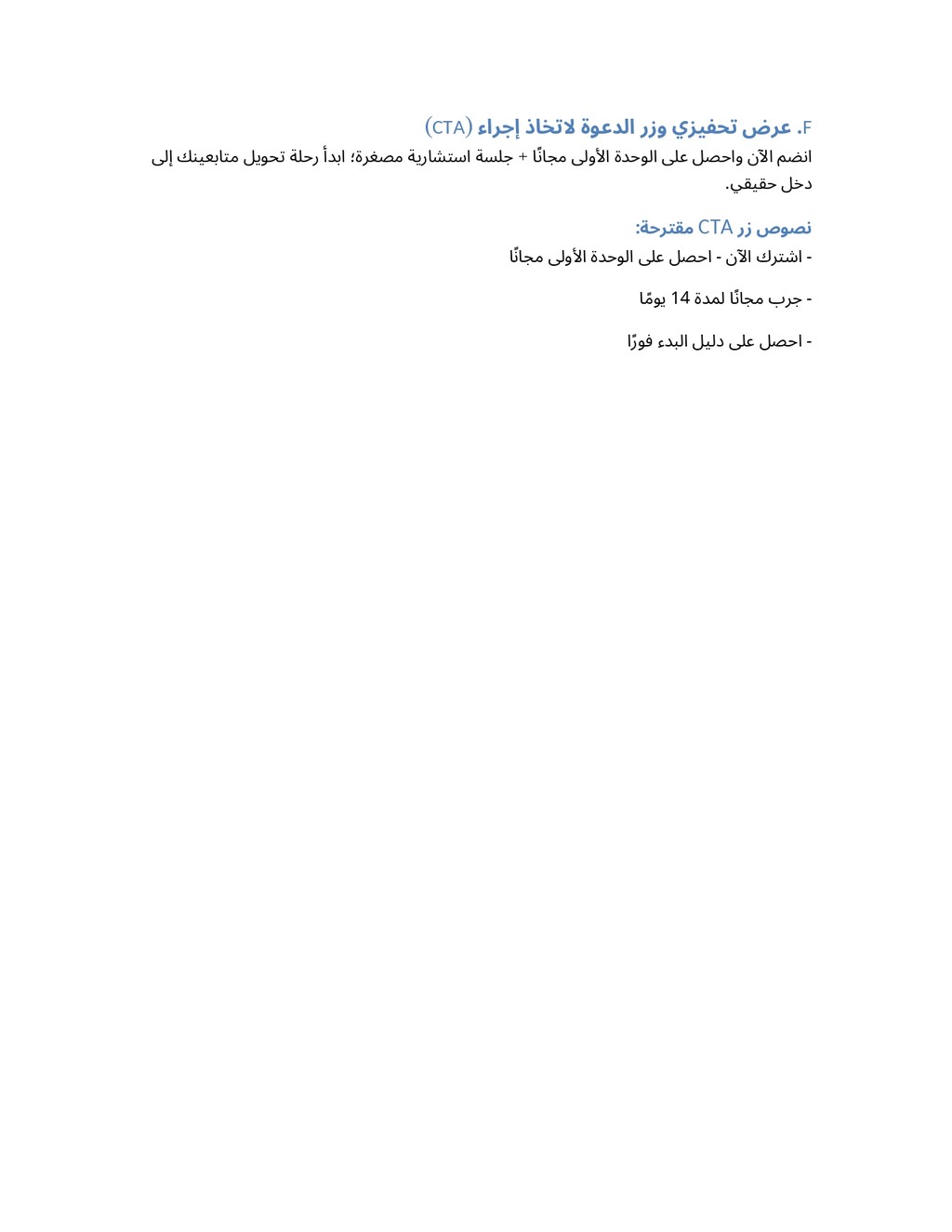 1. كتابة صفحات الهبوط (Landing Pages): صياغة نصوص تركز على الفوائد وتحفز المستخدم على اتخاذ إجراء (CTA).
