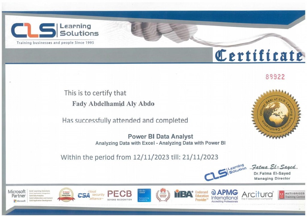 دورة متخصصة في تحليل البيانات باستخدام Microsoft Excel وPower BI، ركزت على إعداد التقارير التفاعلية ولوحات المعلومات (Dashboards) وتحويل البيانات المالية إلى مؤشرات أداء دقيقة تدعم اتخاذ القرار.