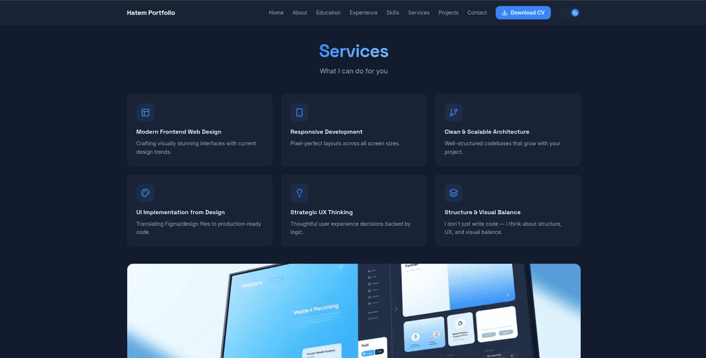 أركز على تصميم مواقع متجاوبة (Responsive Design) وتحسين تجربة المستخدم (UX).