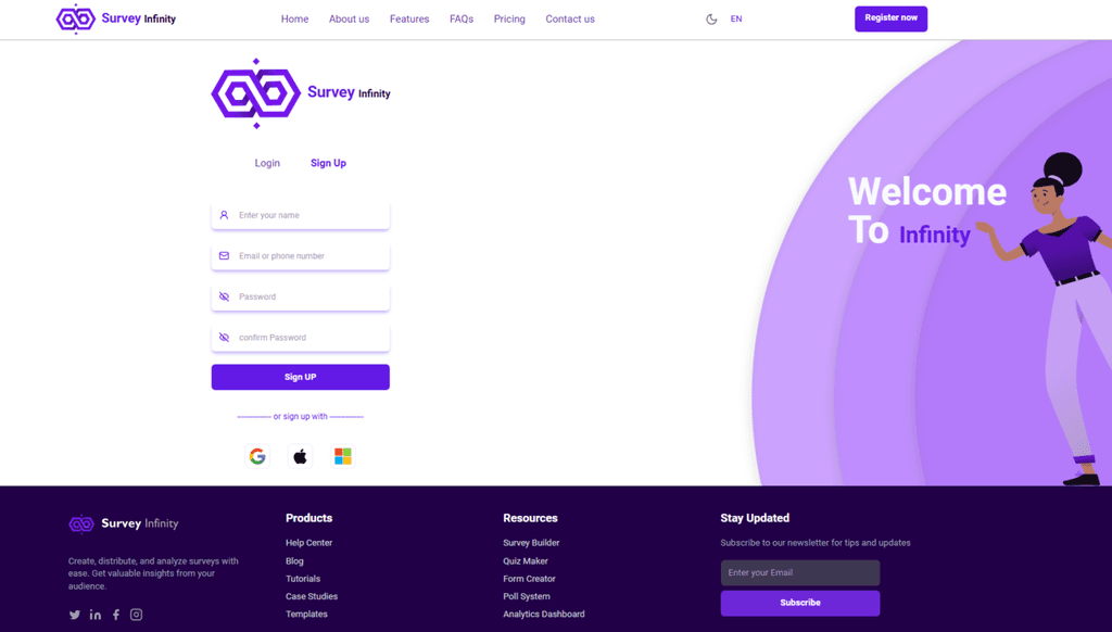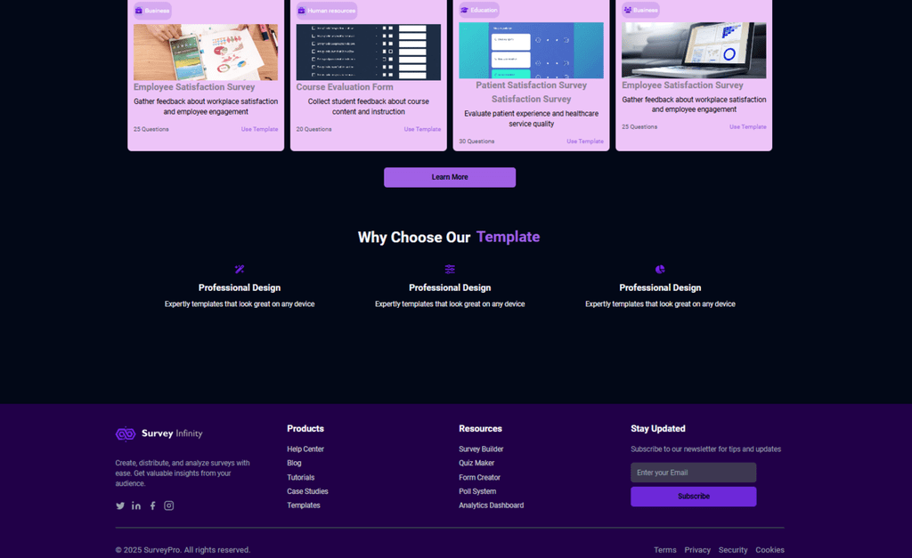 SurveyLand: a web application for creating and managing surveys. It allows users to build surveys dynamically and collect responses, which enhanced my skills in component-driven architecture, form handling, and data flow.