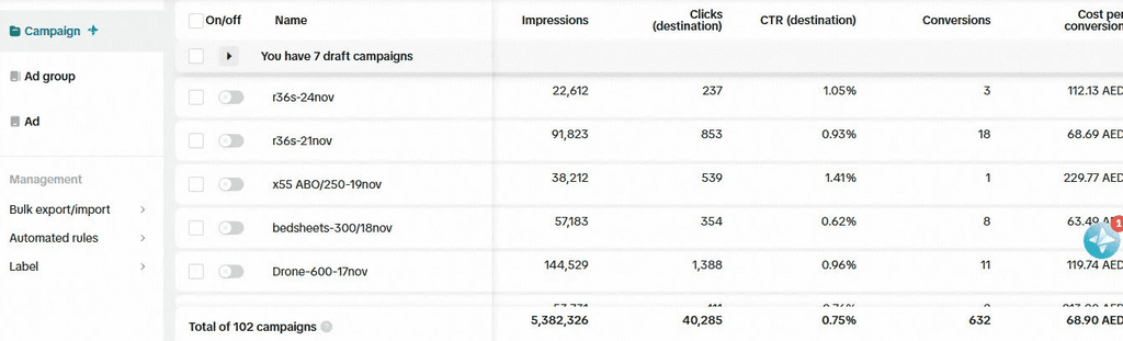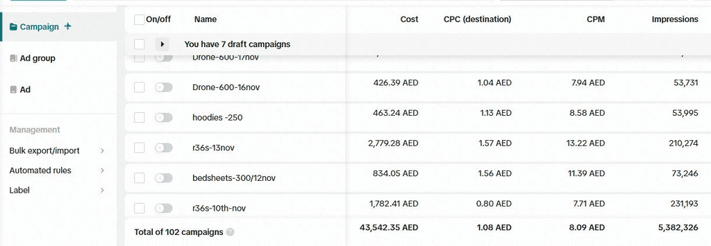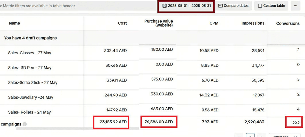 5) Built data-driven reporting frameworks to monitor key performance metrics such as ROAS, CAC, CTR, and overall campaign performance.