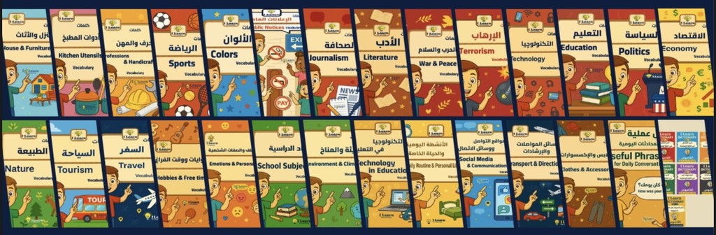 • ابتكرت وأشرفت على 300+ صورة ثنائية اللغة تجسّد موضوعات القواميس السبعة