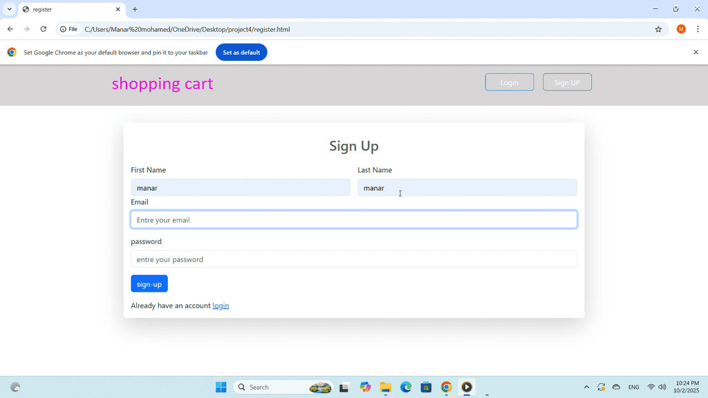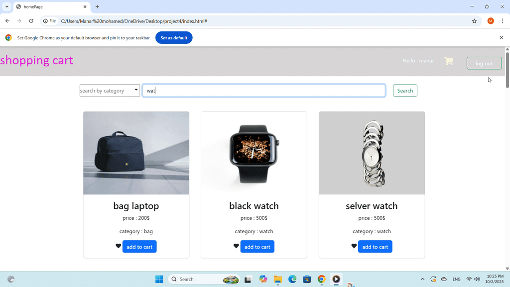 يتيح الموقع للمستخدمين تصفح المنتجات، التسجيل وتسجيل الدخول، وإضافة المنتجات إلى عربة التسوق، مع واجهة جذابة وسهلة الاستخدام تحاكي المتاجر الإلكترونية الواقعية.