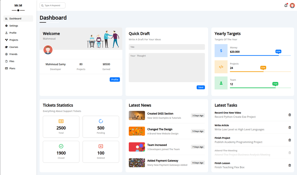 - تطوير منصة إدارة مشاريع كاملة باستخدام React.js.