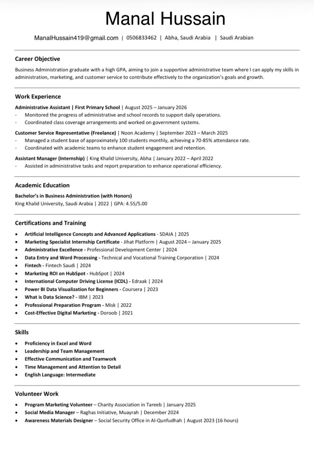 أنا منال حسين خريجة بكالوريوس ادارة اعمال من KKU في عام 2022 بمرتبة الشرف الثانية