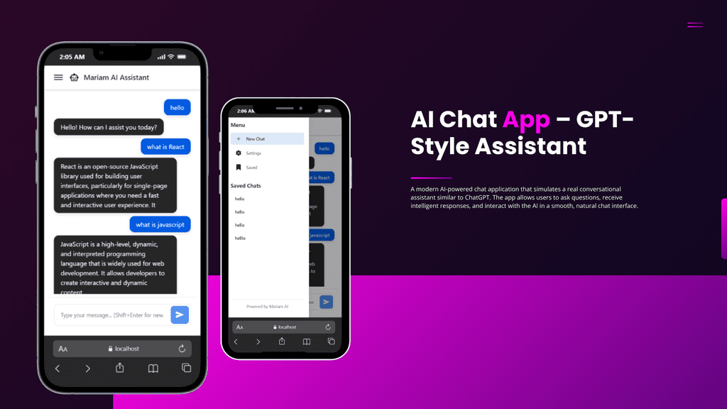 أنا مريم، مطوّرة واجهات أمامية (Front-End Developer) شغوفة بعالم البرمجة والتصميم. أعمل على بناء صفحات ويب متجاوبة، أنيقة، وسهلة الاستخدام، مع تركيز خاص على تجربة المستخدم (User Experience) لتكون سلسة وجذابة.