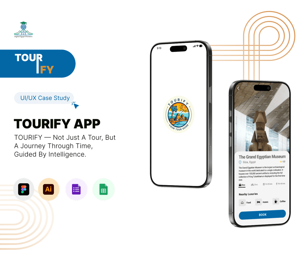 الوصف: عملت على تصميم تجربة مستخدم لتطبيق ذكي يساعد السياح داخل المتاحف المصرية. شمل العمل إنشاء الـuser flows، وتصميم واجهات التطبيق باستخدام Figma، والتعاون مع فريق التطوير.