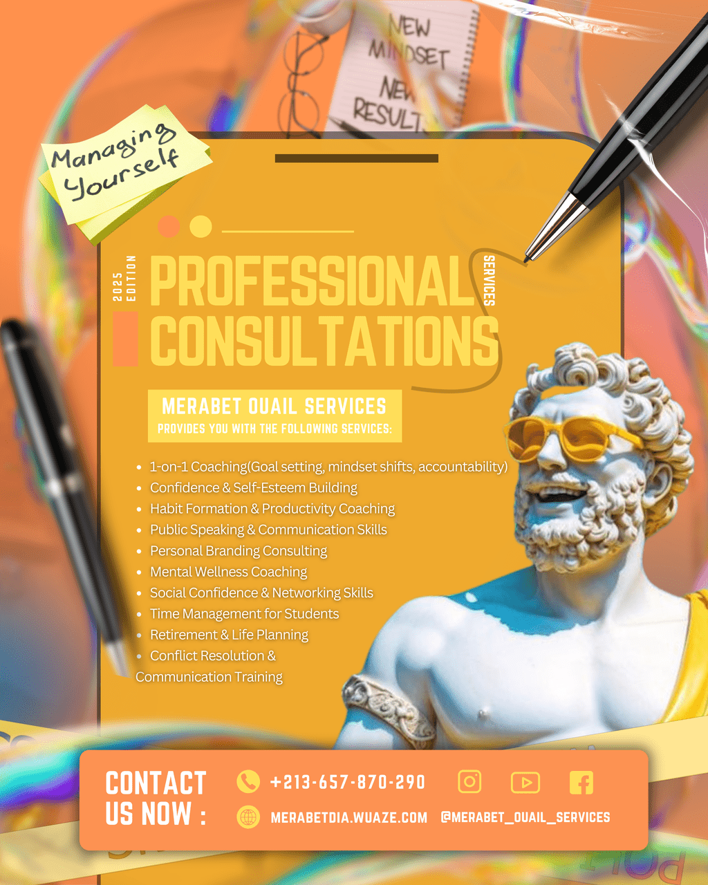 - تنظيم دورات تدريبية في التنمية البشرية والتسويق الشبكي.