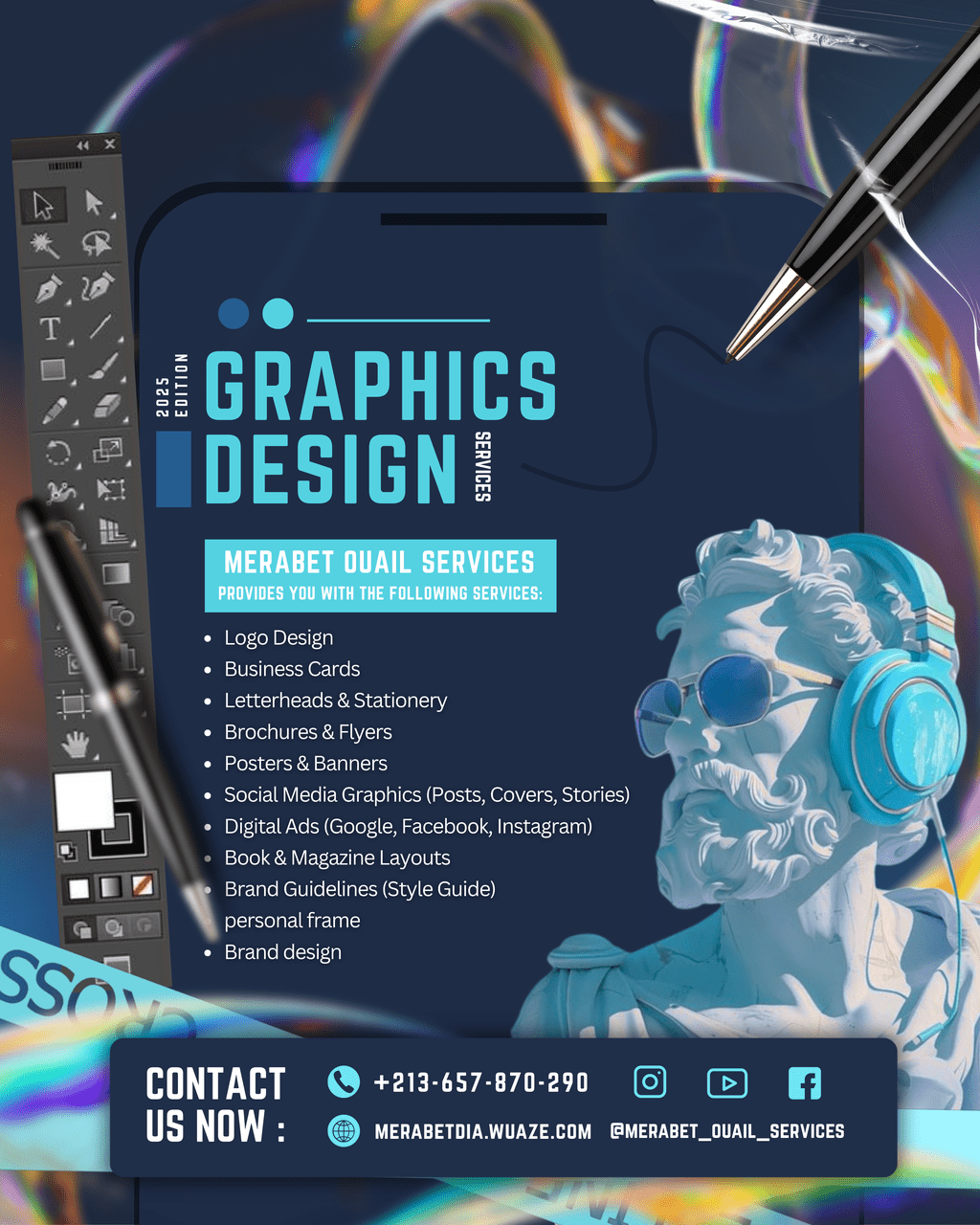 الأدوات: Photoshop، Illustrator، Premiere Pro، Canva,CapCut.