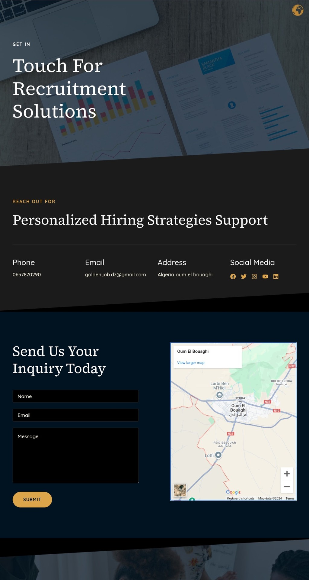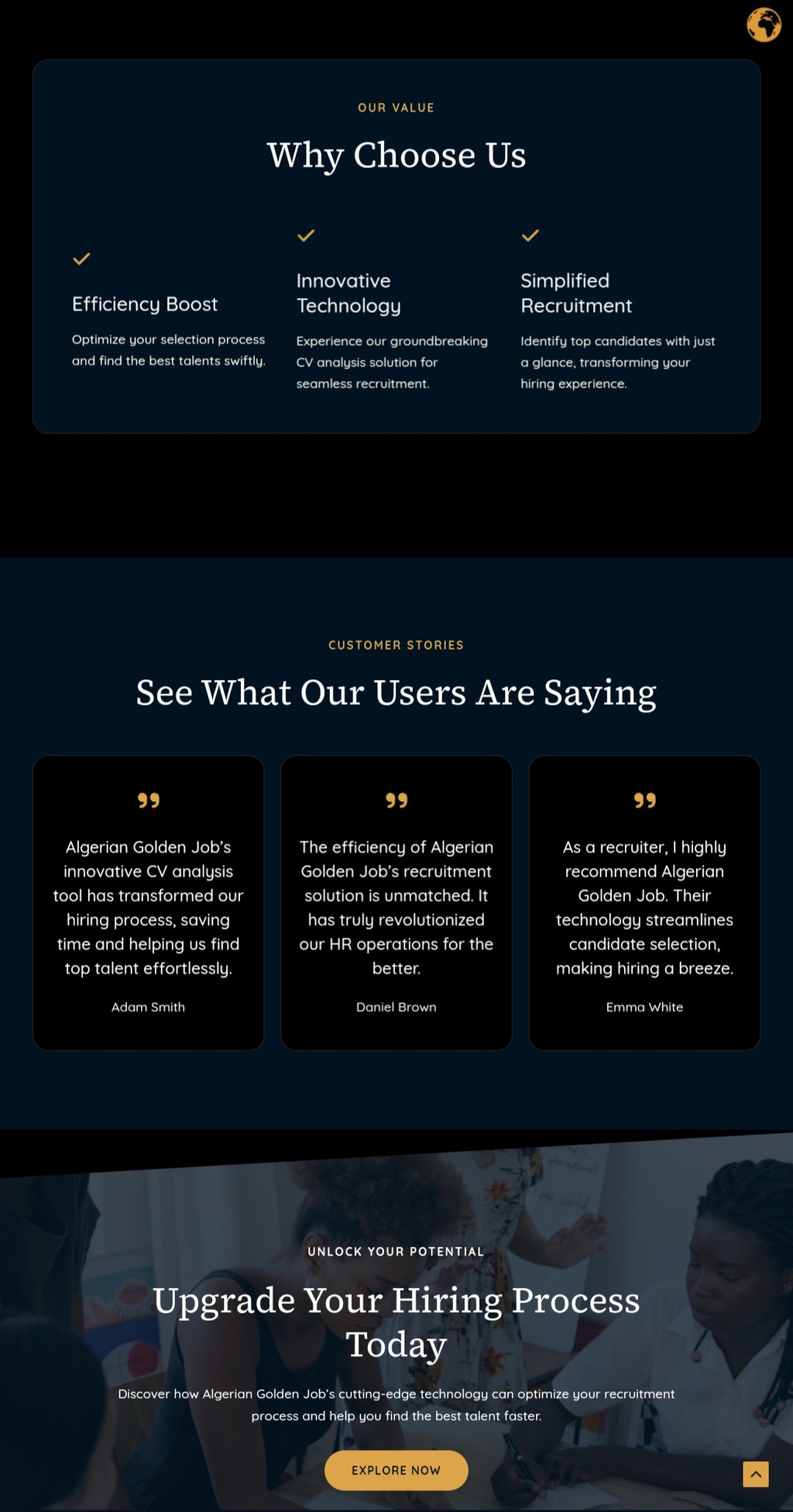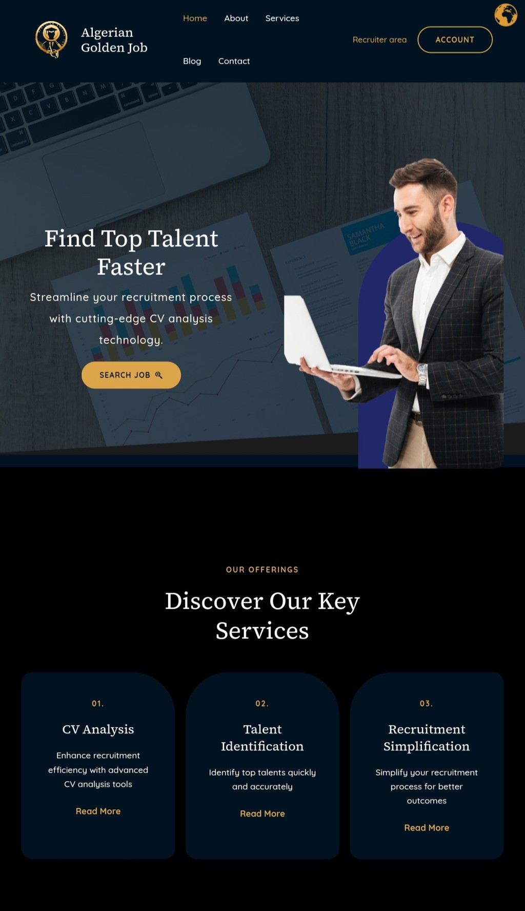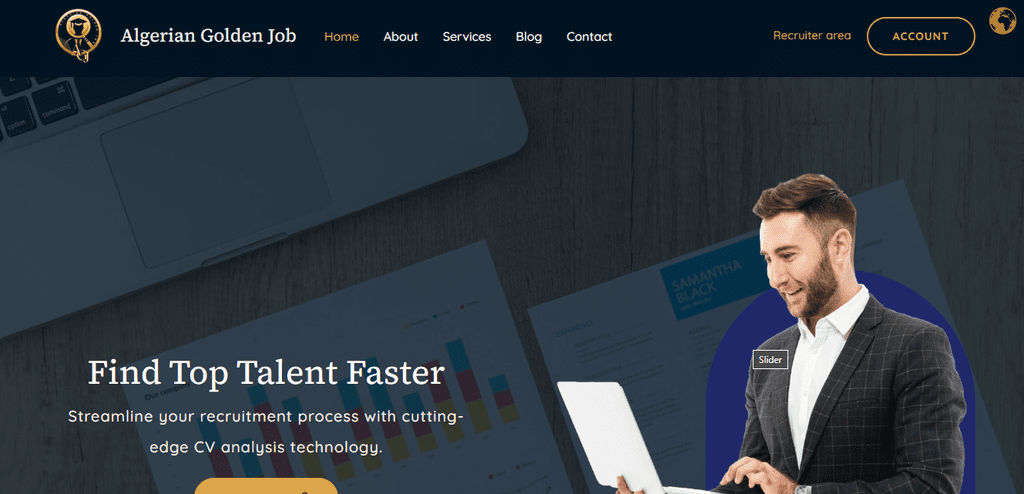الوصف: منصة توظيف مبتكرة لحل تحديات سوق العمل في الجزائر عبر مطابقة ذكية بين الباحثين عن العمل والشركات.