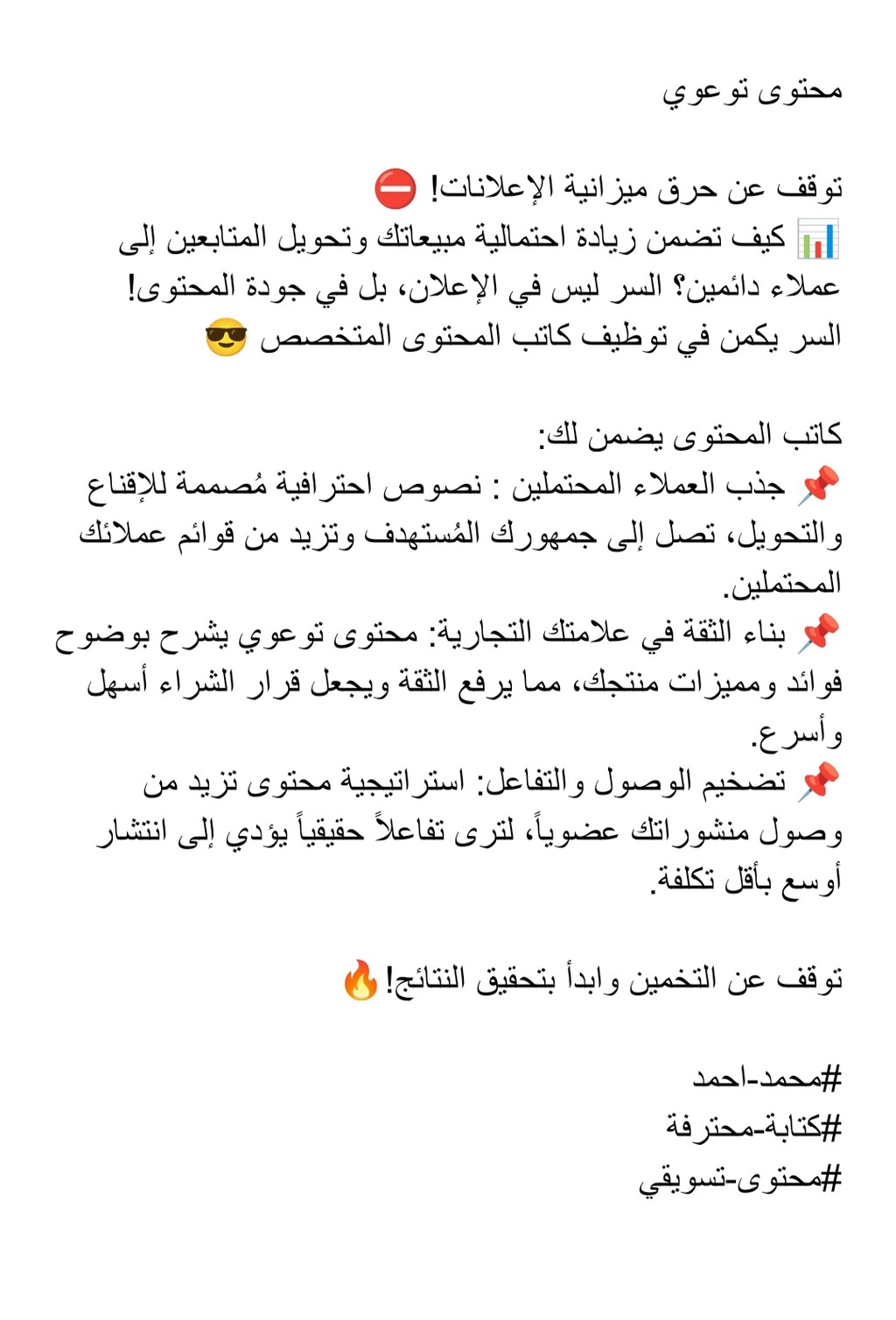 كاتب محتوى متخصص في التسويق عبر السوشيال ميديا.