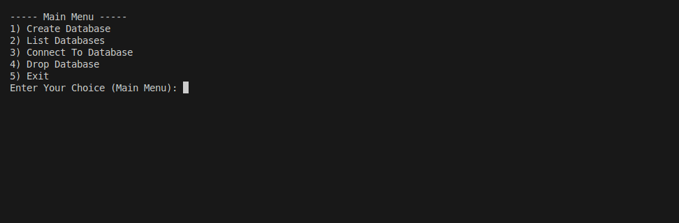 قمت بتطوير نظام إدارة قواعد بيانات بسيط (Simple DBMS) باستخدام Bash Script يعمل من خلال واجهة سطر الأوامر (CLI Menu)، بهدف محاكاة آلية عمل أنظمة قواعد البيانات التقليدية مثل MySQL أو PostgreSQL ولكن بطريقة مبسطة تعتمد على المجلدات والملفات داخل نظام التشغيل.