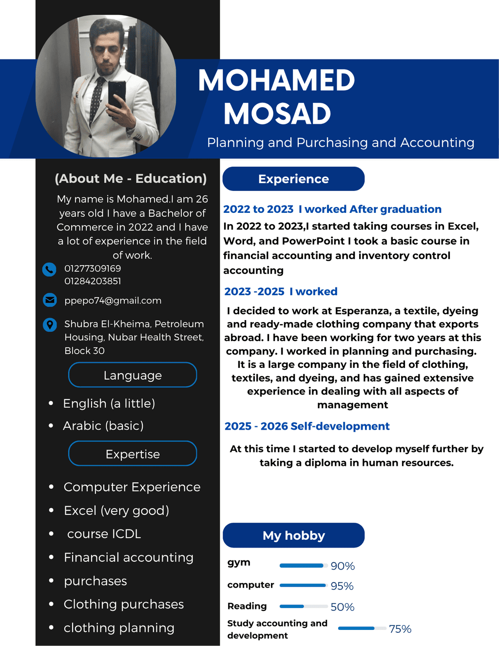 لدي هدف ان اصبح متطور في المجال الاكتروني و العمل عن بعد في الاعلانات و العمل المقالي و العمل بتصميم او المونتاجح