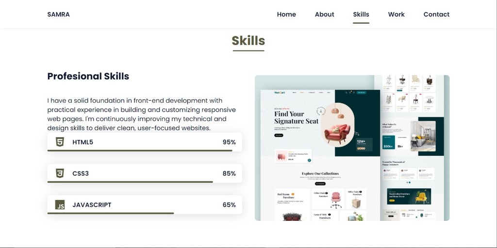 قمت بتطوير موقع شخصي احترافي باستخدام HTML5 وCSS3 وJavaScript لعرض مهاراتي ومشاريعي كمطور واجهات أمامية. يتميز الموقع بـ: