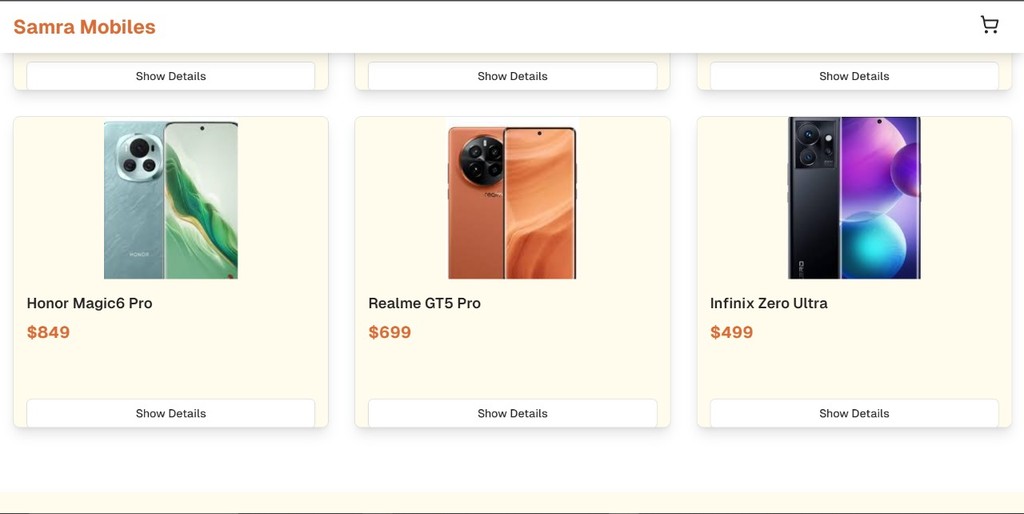 طورت موقع متجر إلكتروني فريد من نوعه باستخدام React، متخصص في بيع الهواتف الذكية والإكسسوارات. يتميز المشروع عن غيره بـ: