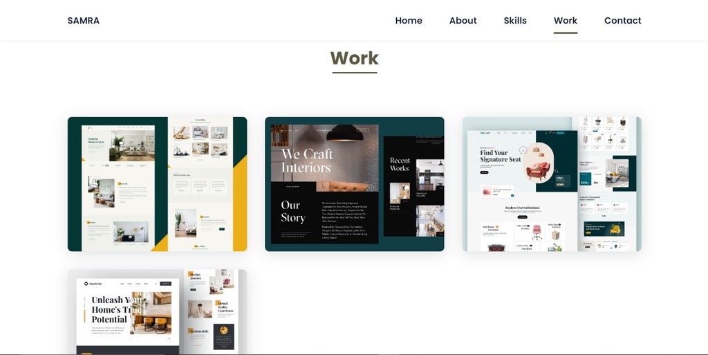 تنظيم واضح: أقسام منظمة مثل "حول"، "المهارات"، "أعمالي"، و"تواصل" لتسهيل وصول الزوار للمعلومات.