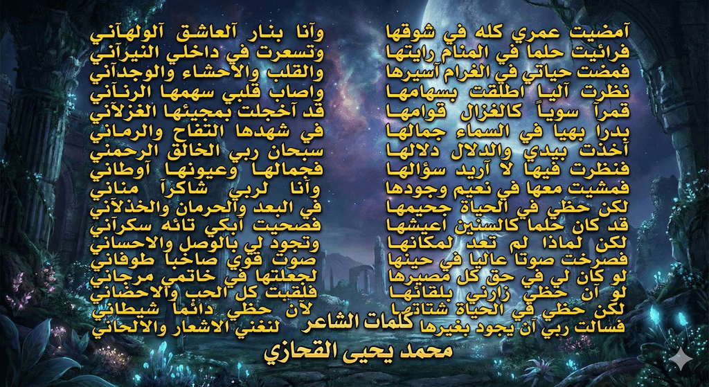 مرحباً، أنا الشاعر محمد يحيى القحازي — صانع الكلمات التي تبقى، والقصائد التي تُقال فتُدهش، وتُلقى فَيخلُد أثرها.