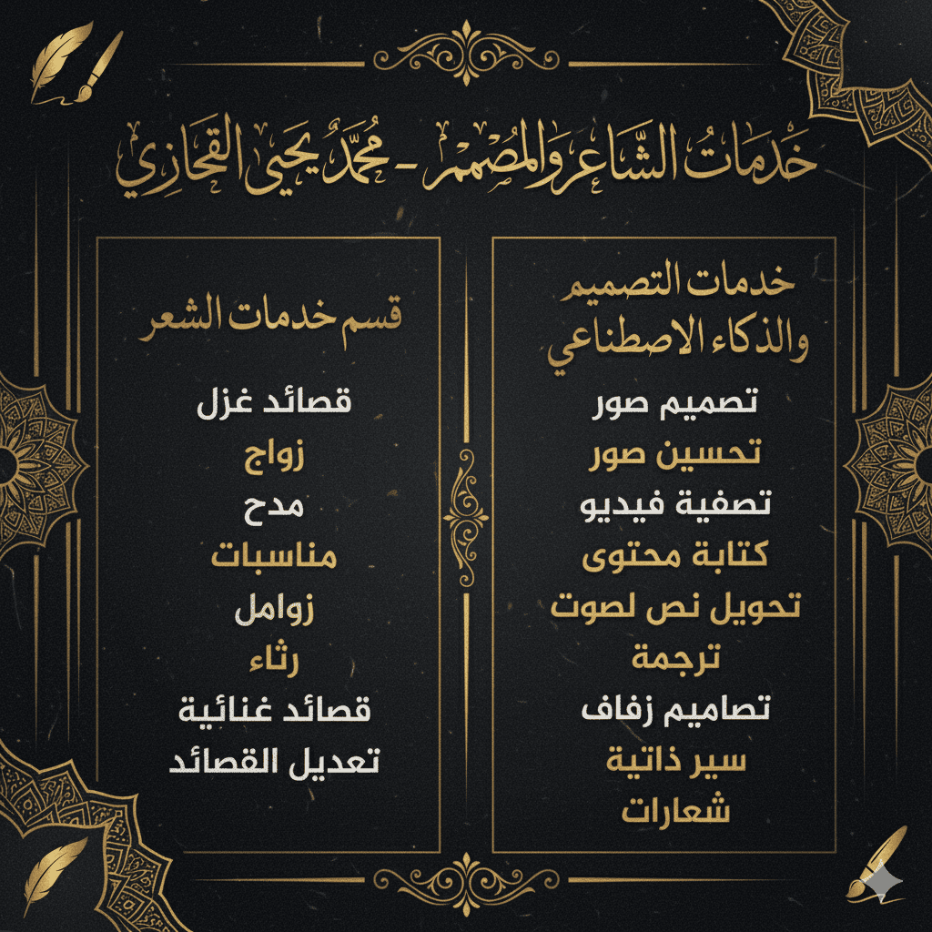 "خدمات الشاعر والمصمم – محمد يحيى القحازي"