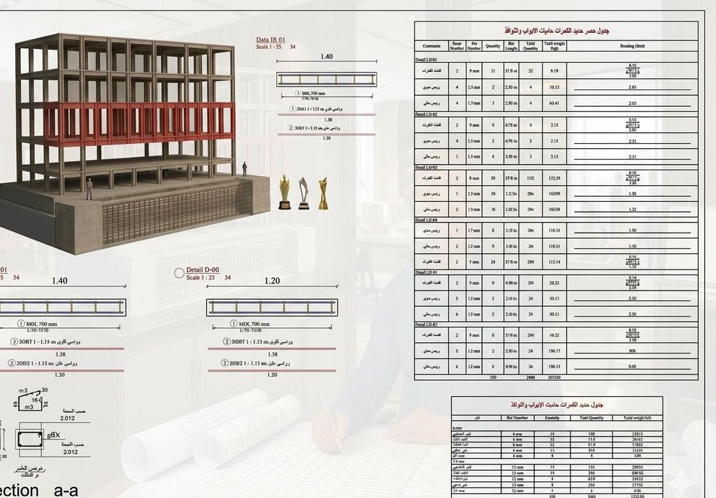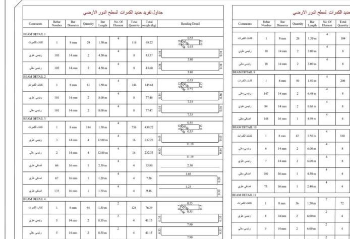 - لوحات Shop Drawings احترافية: أقدم لوحات تنفيذية تفصيلية وجداول تفريد حديد (BBS) دقيقة جداً، تضمن للمقاول التنفيذ السليم وللمالك الرقابة المطلقة على المواد.