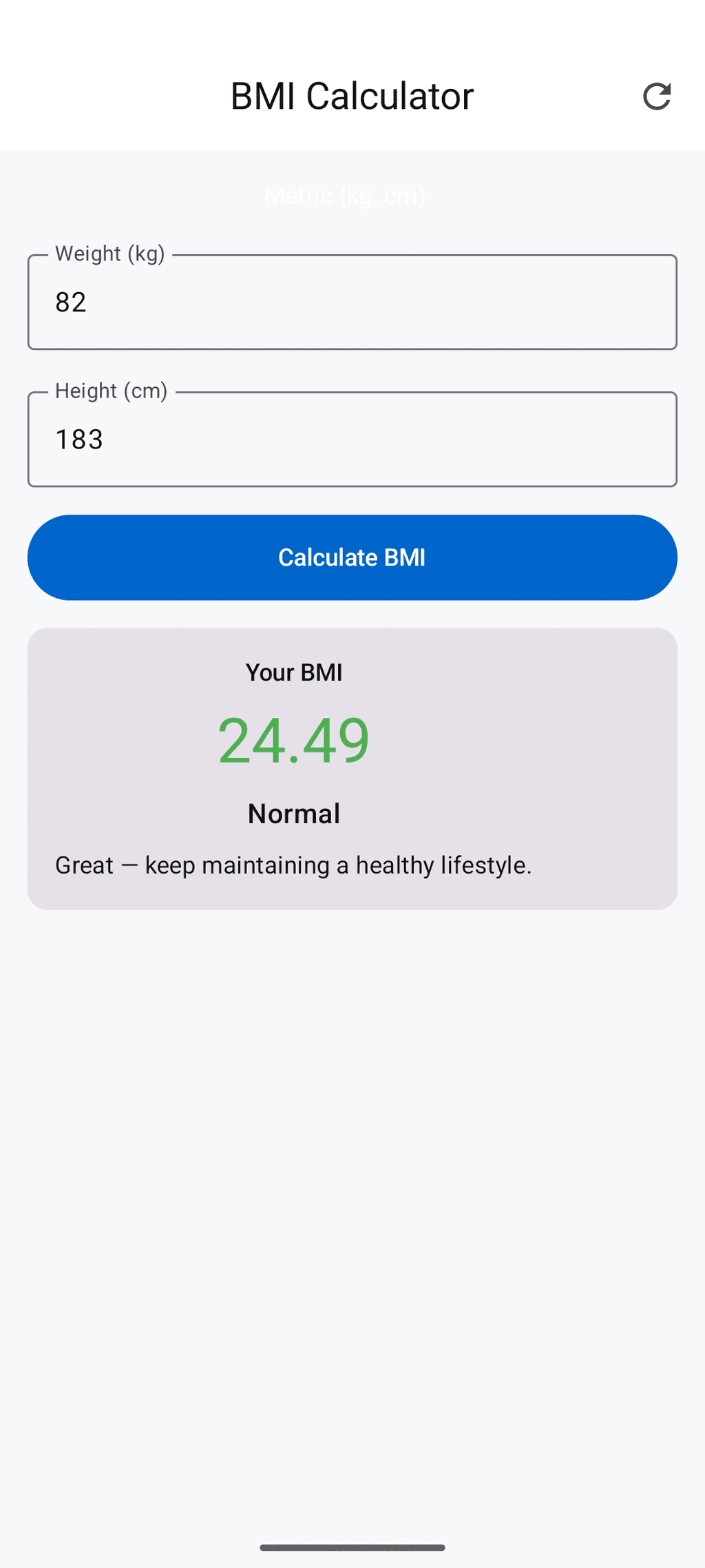-BMI Calculator: تطبيق لحساب مؤشر كتلة الجسم مع ملاحظات ديناميكية.